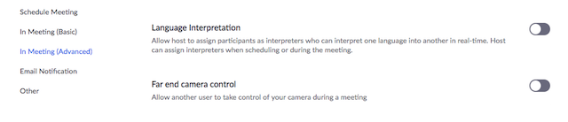 答:找到“Setting/設(shè)置”——“In Meeting (Advanced)/會議中(高級)”——“Language Interpretation/語言傳譯”